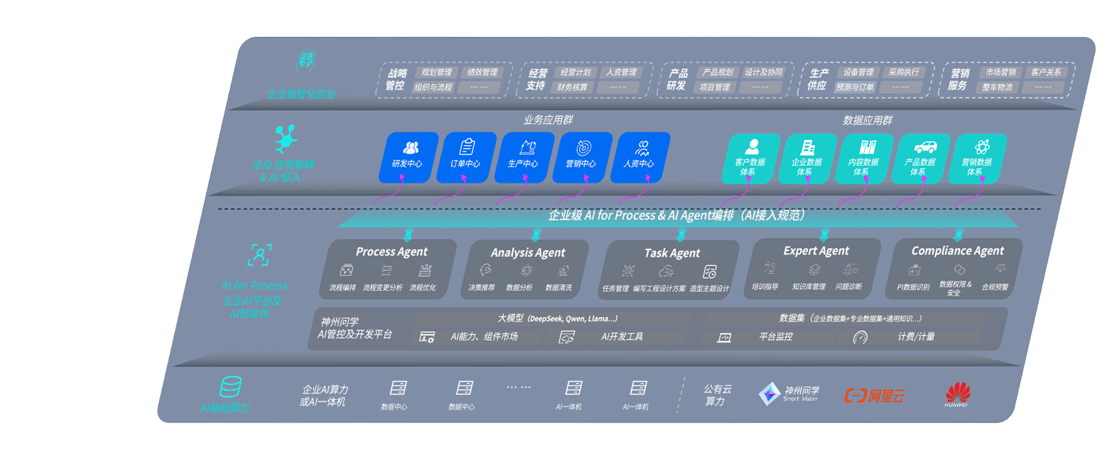 大玩家问学智车解决方案是一套基于AI技术的汽车行业智能化系统,,,覆盖从底层算力到顶层AI应用的全栈方案。。。方案由算力层、、、、模型层和应用层组成:算力层,,,方案支持多种一体机配置,,,,具备云端灵活部署、、、、多云适配以及动态优化计算资源的能力;模型层,,,,大玩家问学平台版提供了企业级AI应用一站式构建与管理平台,,,,支持基于后训练强化技术的汽车企业专属模型的训练、、评测和运营;应用层,,大玩家问学DeepSeek版提供包括超级员工、、、、智能招采、、智能营销、、、、智能客服、、、、AI for BI等一系列解决方案,,可助力汽车行业实现数字化转型,,让管理更智能、、、、响应更敏捷。。